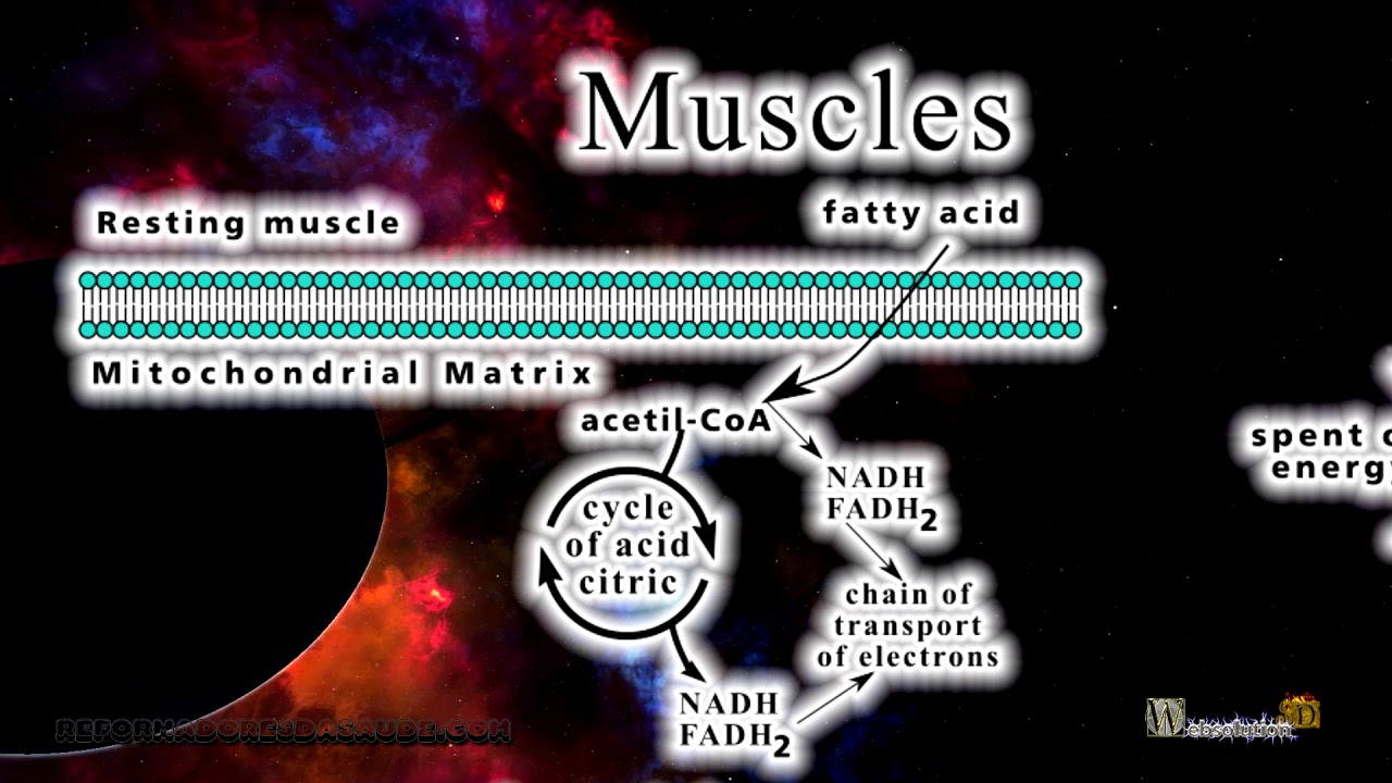 The resting muscle mainly uses fatty acid, which enters the mitochondrial matrix, and is the target of beta oxidation, producing NADH and FADH2 and Acetyl coenzyme A, which feeds the citric acid cycle, and producing NADH and FADH2, which go to the chain. of electron transport for ATP synthesis in oxidative phosphorylation.